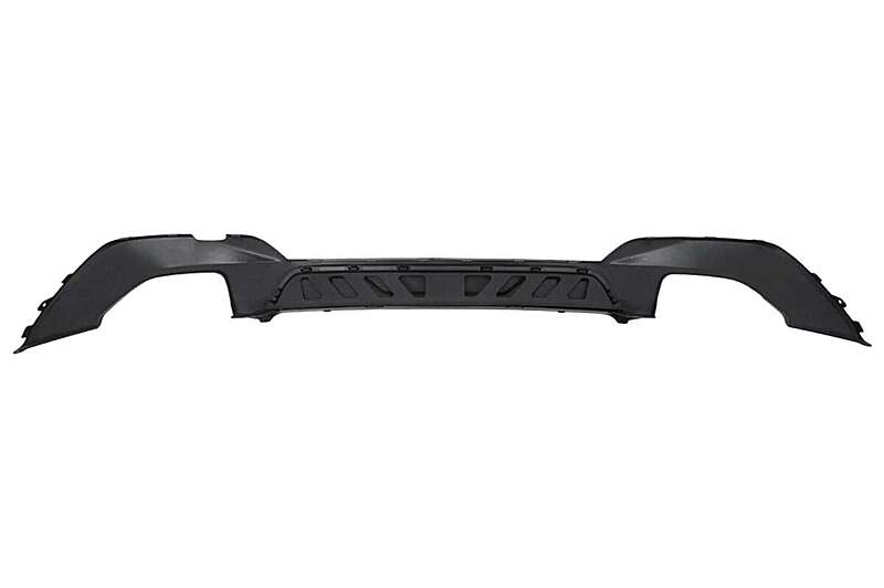 This rear bumper diffuser with exhaust tips improves your vehicle's exterior styling. An aggressive look to your Sport Package.