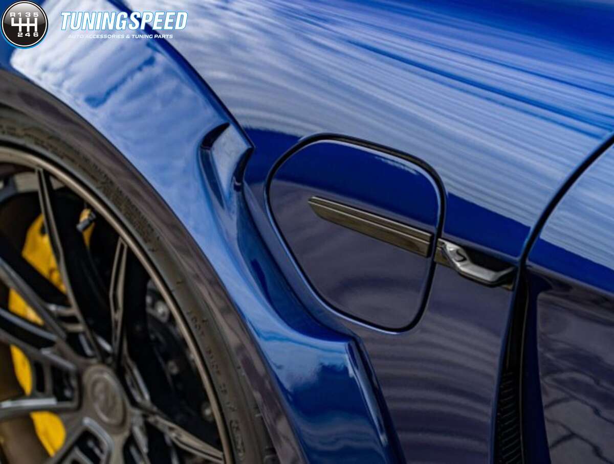 Our PD TE Front and Rear Widenings (10 Pcs) give the Porsche Taycan [2019+] more dynamics and highlight the sporty line of the vehicle. The material is made from the highest-quality fibreglass mix, carefully laminated by hand, and then processed.