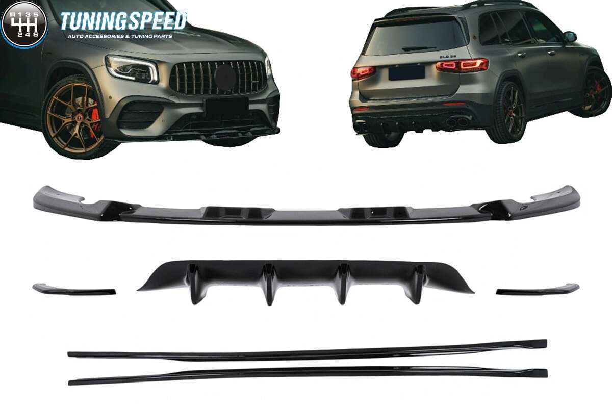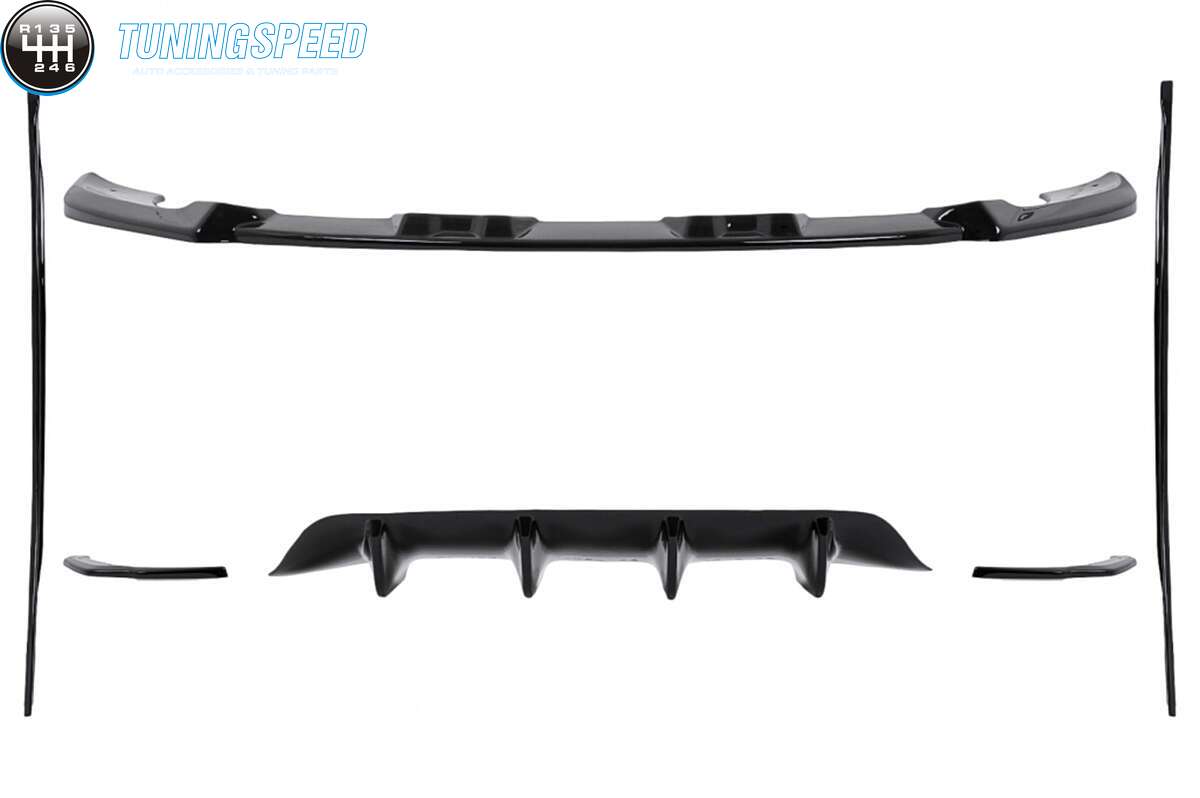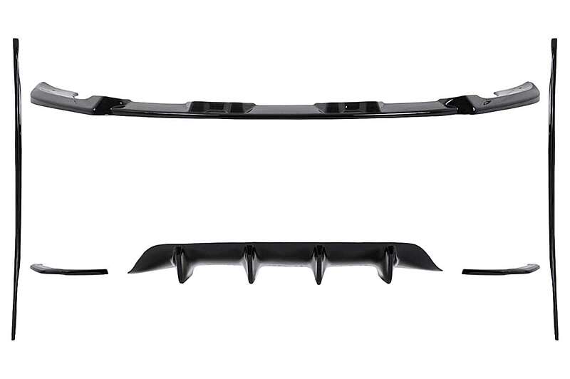 The front lip, rear diffuser extension, and side skirts extensions crafted in high-quality plastic