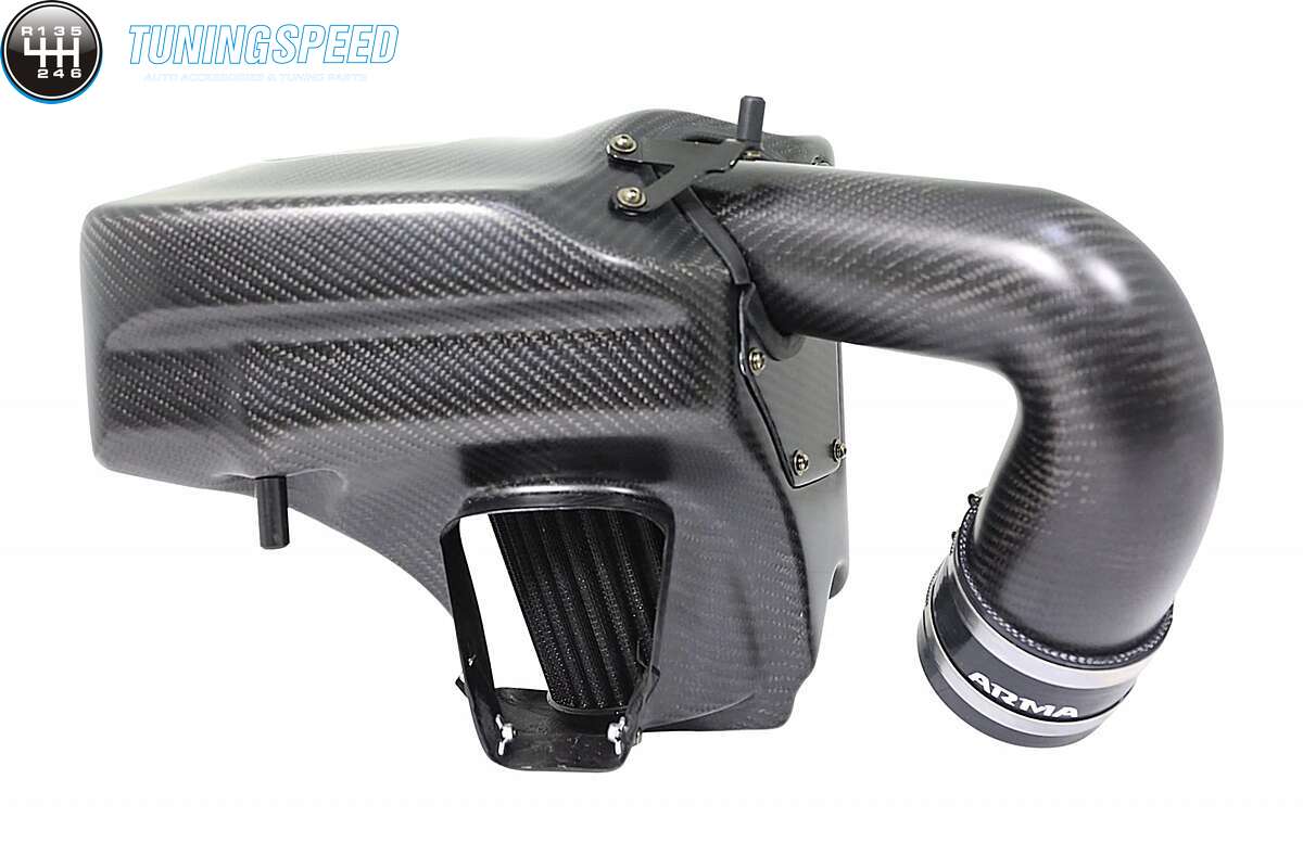 The ARMASPEED Carbon Fiber Intake System features a unique design with a vacuumed carbon fiber airbox to isolate hot engine bay air, ensuring cooler air intake for better engine performance. It offers high quality, efficiency, and continuous innovation. This system not only enhances performance but also adds to the engine bay’s aesthetics with its carbon fiber restyling.