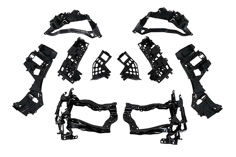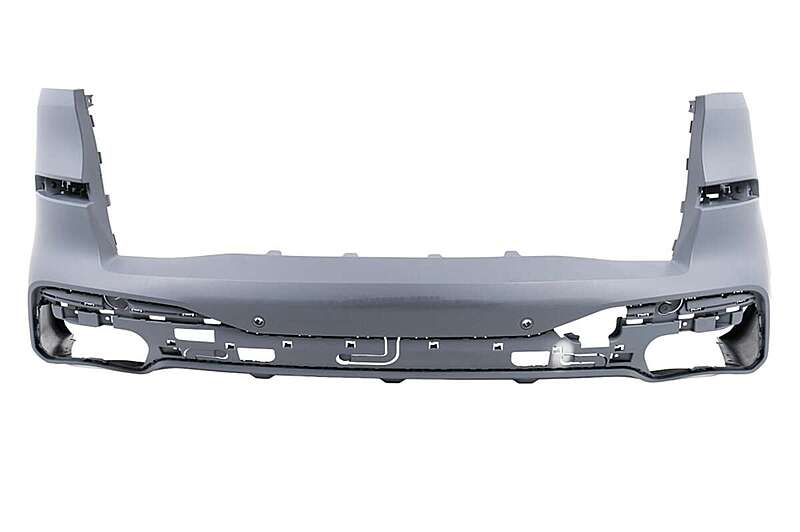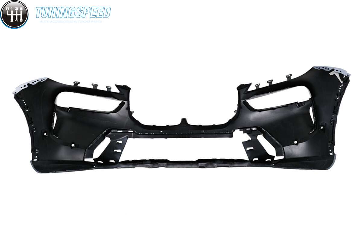 Front bumper equipped with central grille, lower grille, PDC holders, and front bumper ornaments
