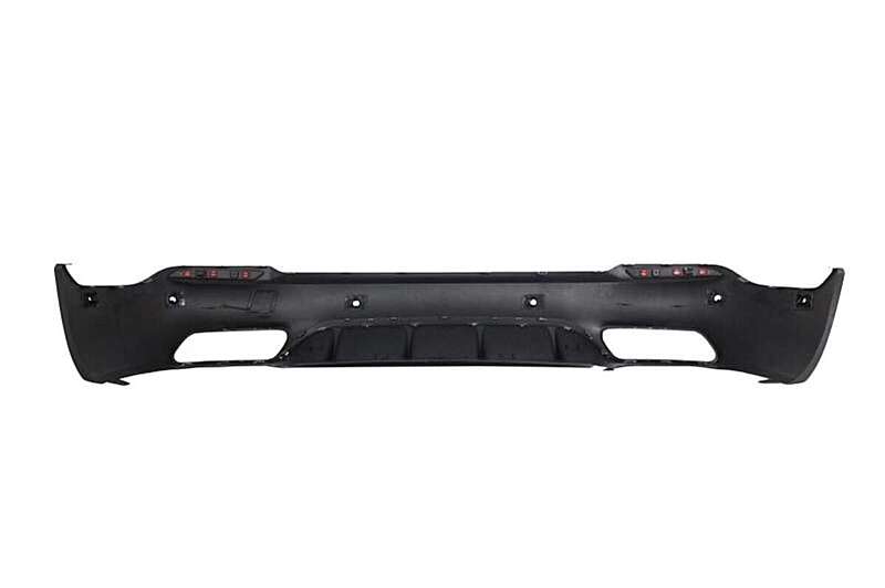 Rear bumper diffuser equipped with twin outlet air diffuser, supports for parking sensors (PDC).