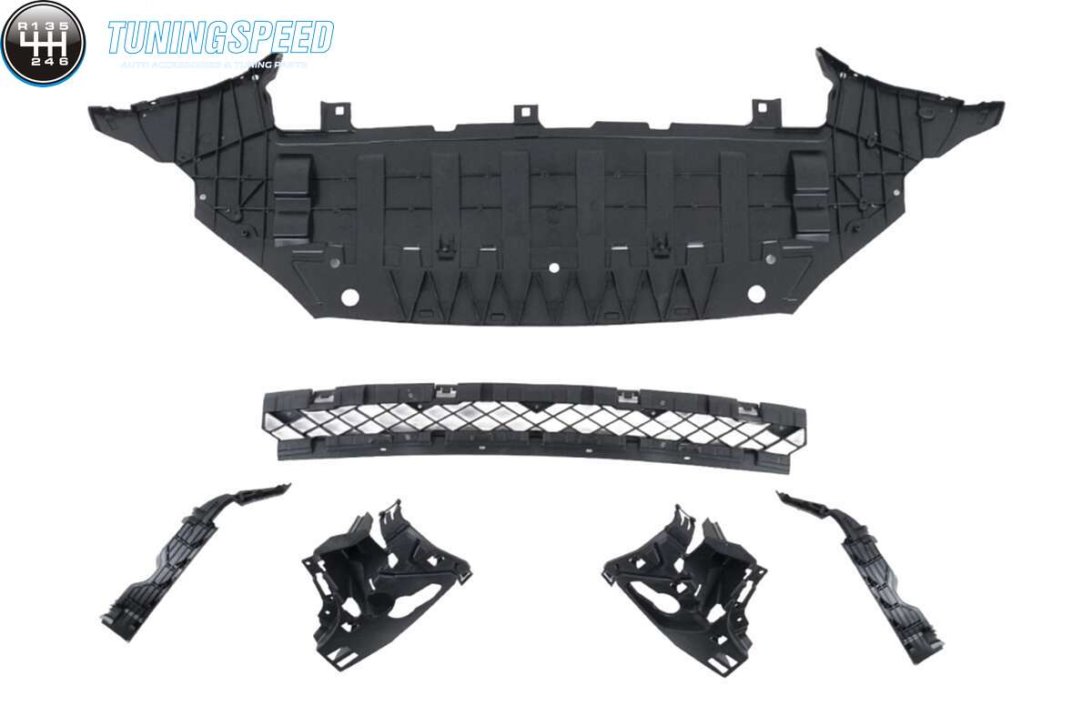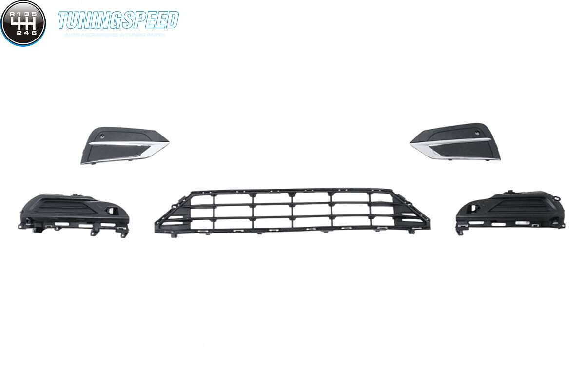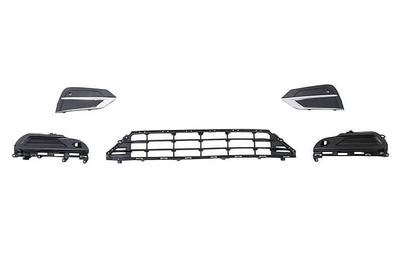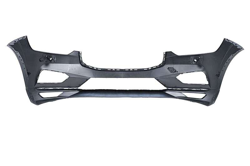 Front bumper equipped with central grille, central-lower grille, side grilles, and PDC holders