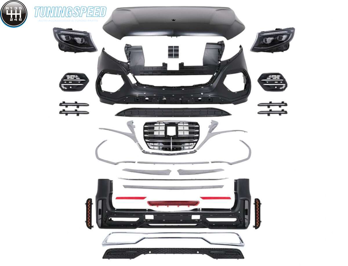 This complete body kit is meant to improve the look of your V-Class W447 (2014-2023) giving the look of the 2024 Design