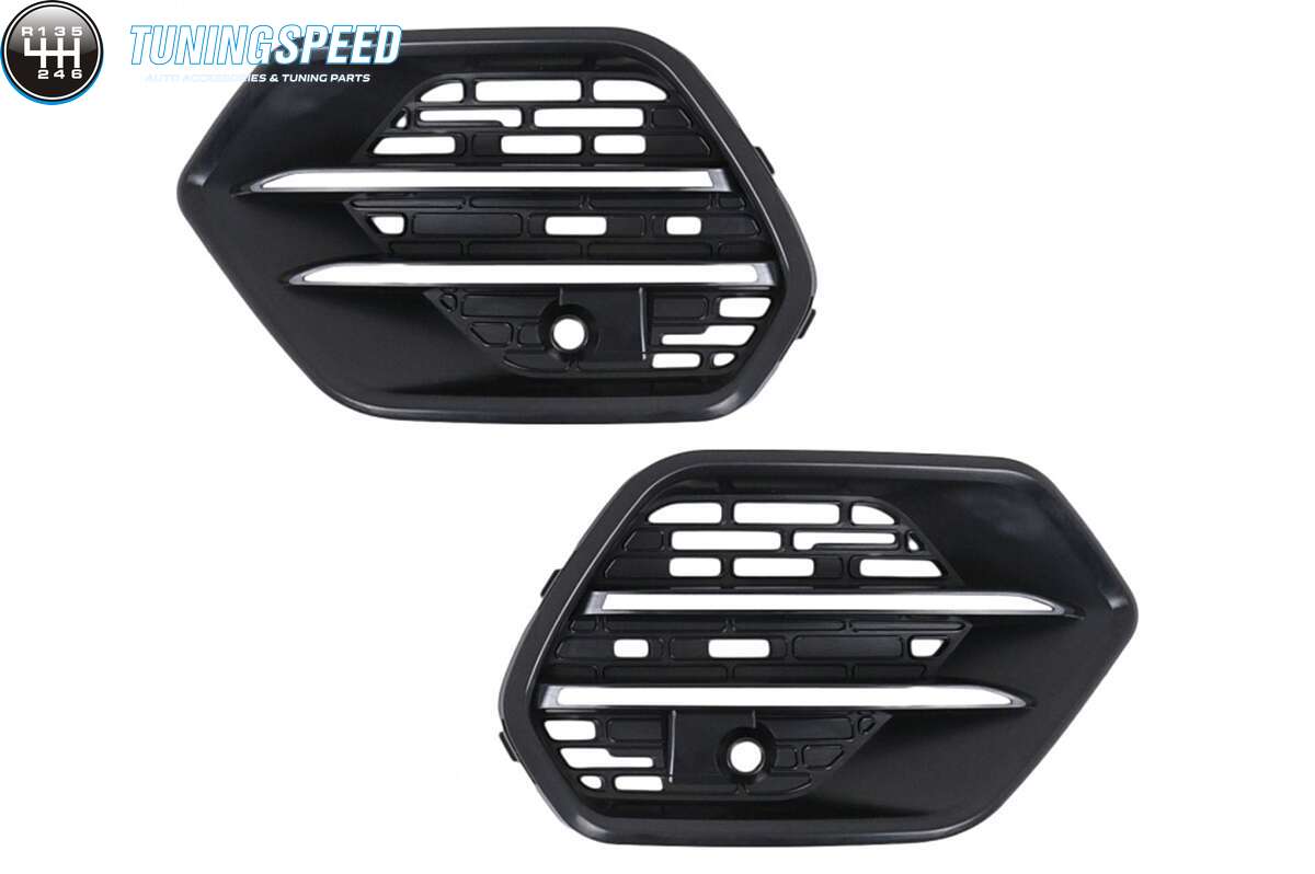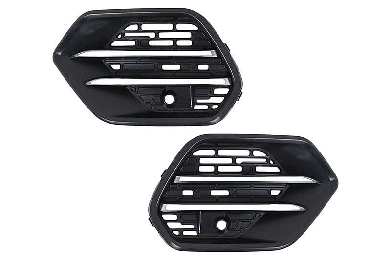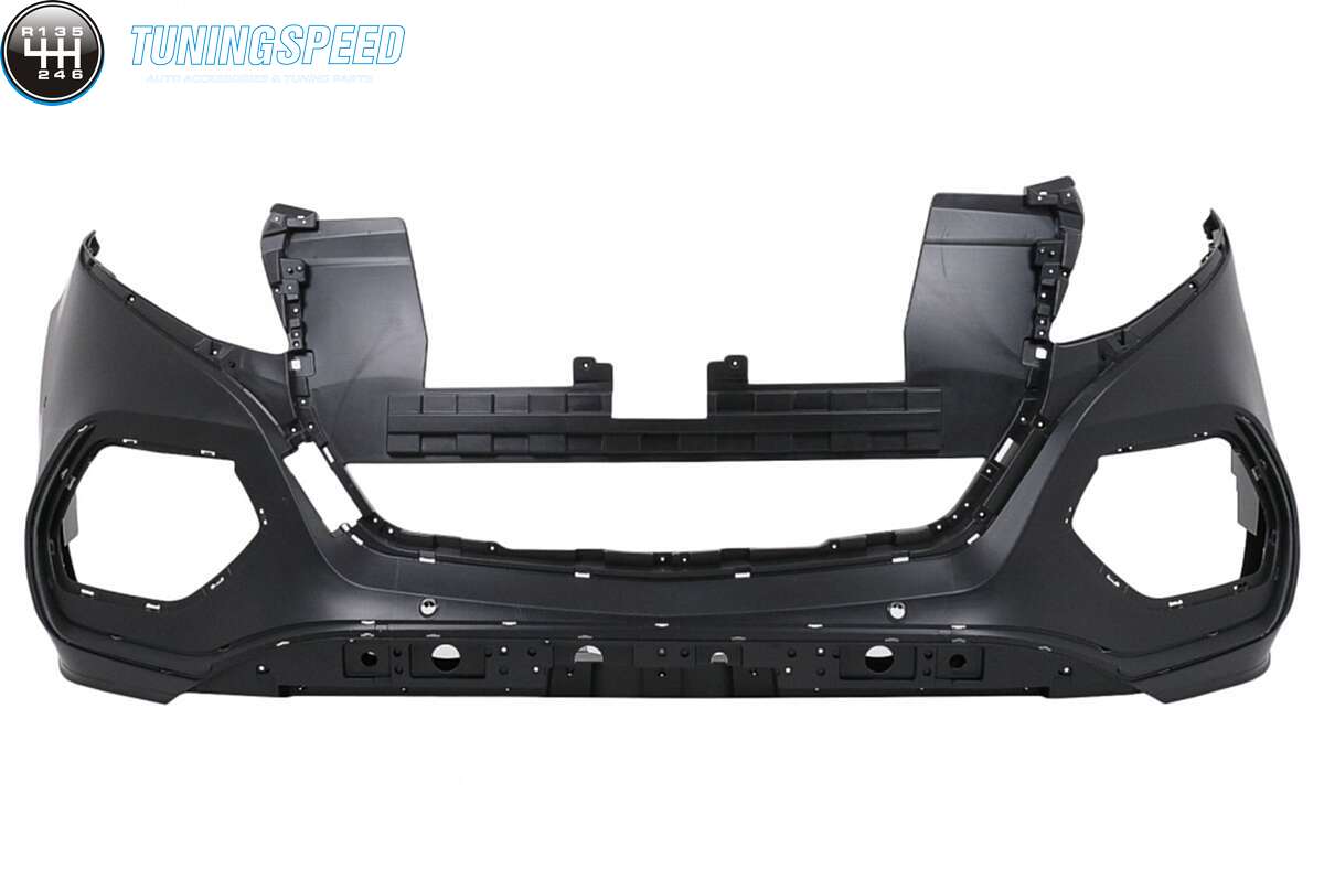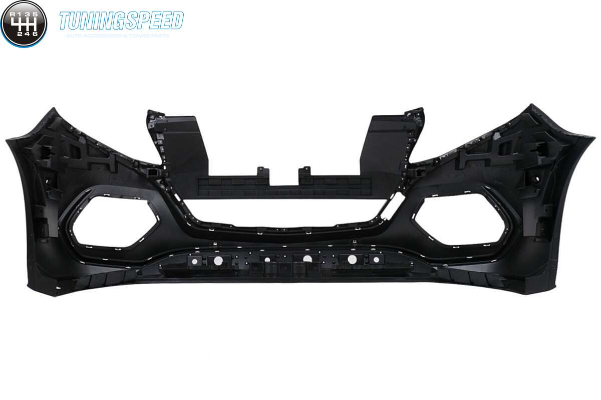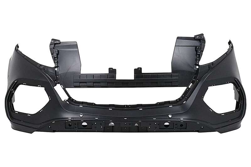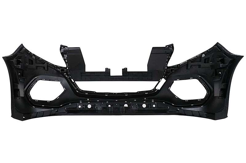 Front bumper equipped with central grille, side grilles, PDC holders, and front bumper moldings.