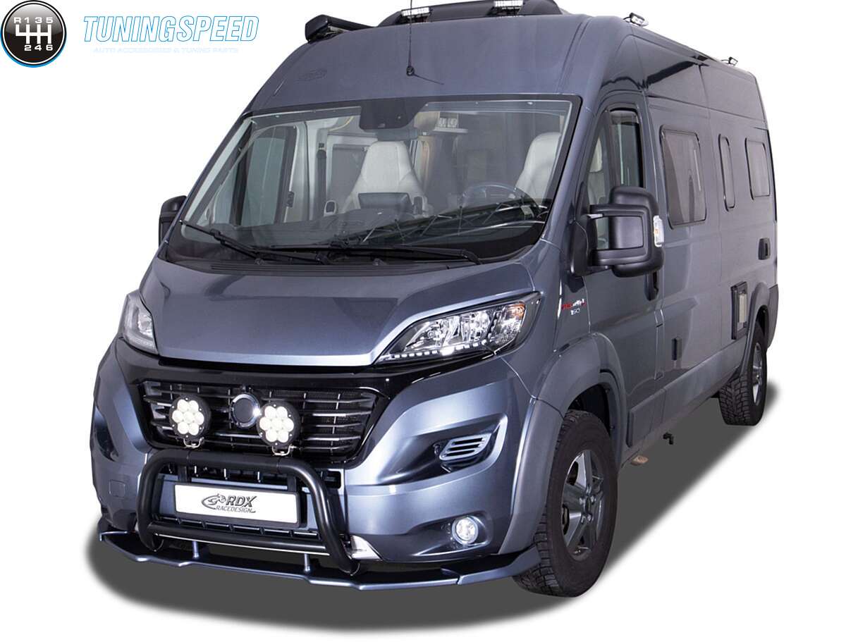 Product information «RDX Front Spoiler VARIO-X for FIAT Ducato (250 / 2014+) & CITROEN Jumper (Y, 250L / 2014+) & OPEL Movano (Y / 2021+) & PEUGEOT Boxer (Y / 2014+) & RAM ProMaster (2013+) (with wheel arch extensions, eG Heavy / Maxi) Front Lip Splitter»