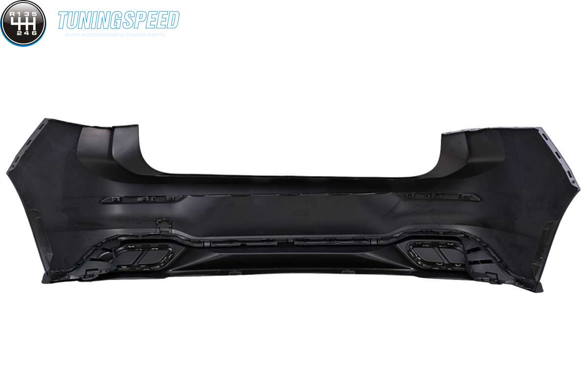 Equipped with tow hook cover, rear bumper reflectors, rear bumper diffuser with exhaust muffler tips ornaments.